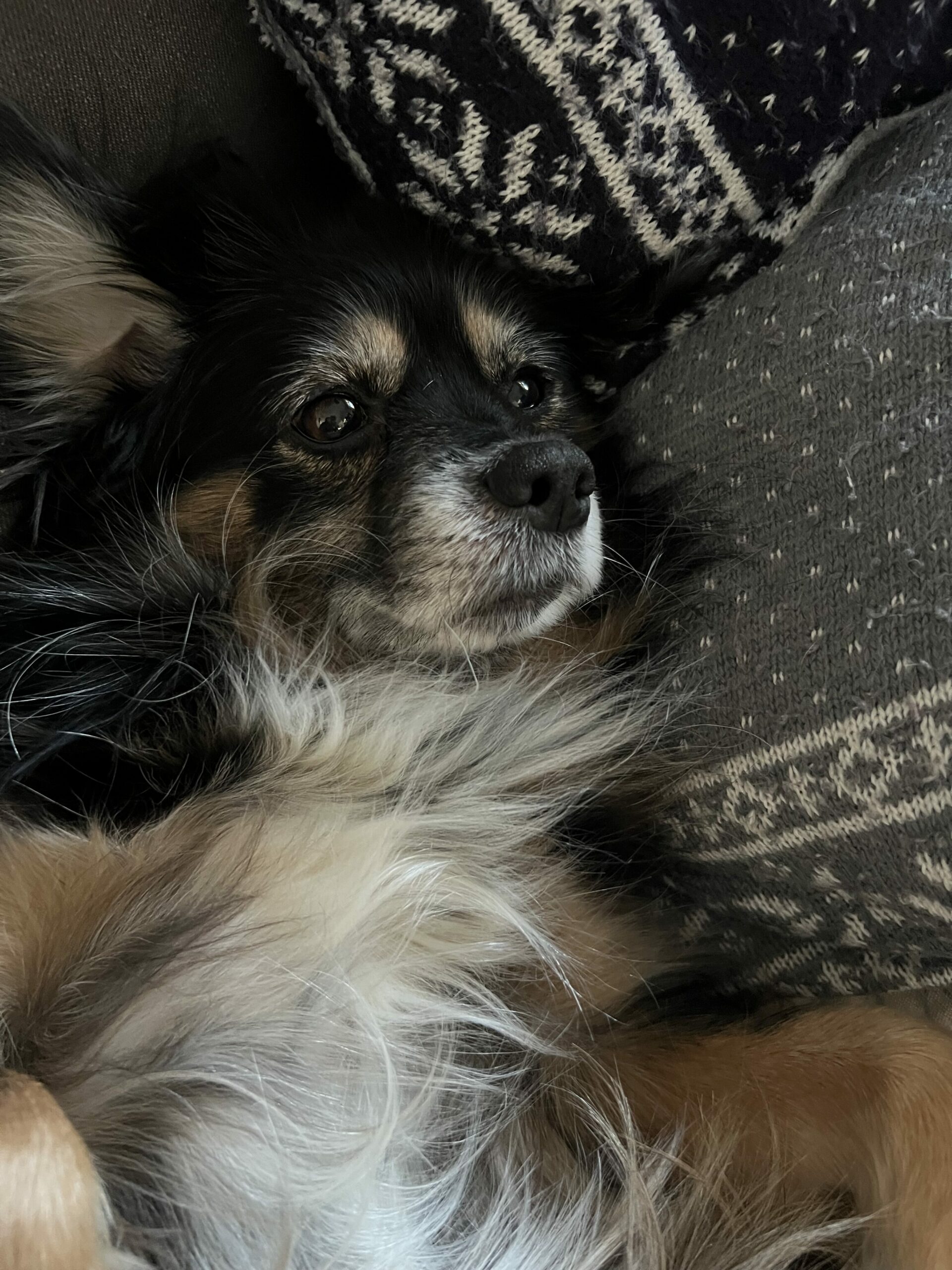 Här ser hon lite ledsen ut, men vet ni vad det beror på? 😅 Det är för att hon är avis på att Sally låg i mitt knä och att jag bara hade en hand och ge mag-gos med:D