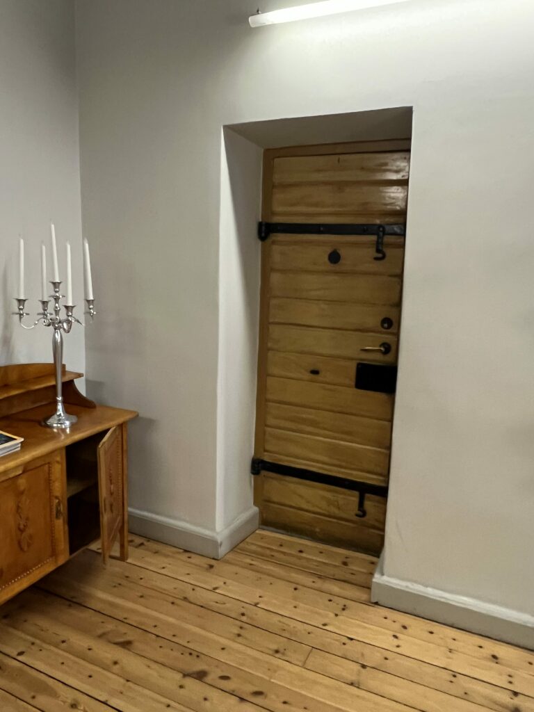 Maffiga smala dörrar in till cellerna, med haspar:) Jag pillade såklart, var tvungen att kolla om de var spärrade eller om det var så att man kunde bli inlåst? Det kunde man inte.