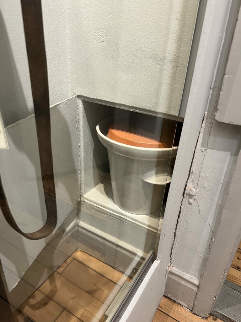 Jag hittade såklart genast en lucka i väggen som jag blev nyfiken på, och efter att ha varit i museeumet så visste jag att det var latrinkärlet som stod där-