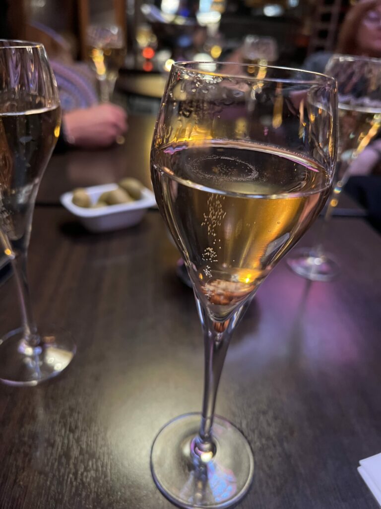 Det var så trevligt anordnat, med bubbel, öl och vin och pinsa, tal och presenter och så roligt att få träffa födelsedagsbarnets familj, släkt och vänner. Vi som är ”hans tjejer” satt ihop först vid ett bord, men sen flyttade vi ihop oss vid det långa bord som finns på ena sidan.
