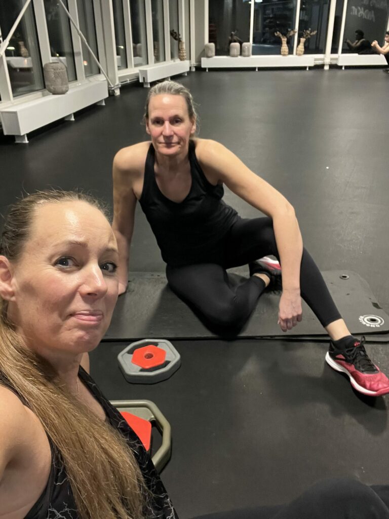 Jaja. Vi körde ett av hans pass iaf, ett lågintensivt med många repetitioner som jag alltid fått extrem träningsvärk av. Varenda gång, och han har skrattat åt mig i alla år:D Eftersom man kan fuska när ingen har koll på en så har vi bytt ut de övningar vi inte gillar;) och lagt in lite andra, plus lagt till. Jag försöker undvika allt över huvudet eftersom jag får så ont i nacken och kör lite alternativa grejor. Avslutar på golvet, och om ni inte brukar göra det, och har ont i ryggen eller så, så ligg på golvet en stund:)