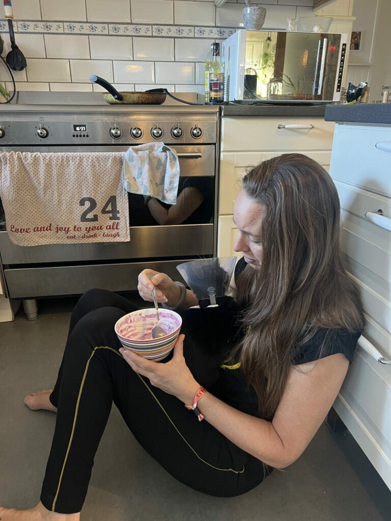 Men nu behövde hon närheten och goset och självklart sitter man där, får ont i rumpan och är kissnödig men ändå…