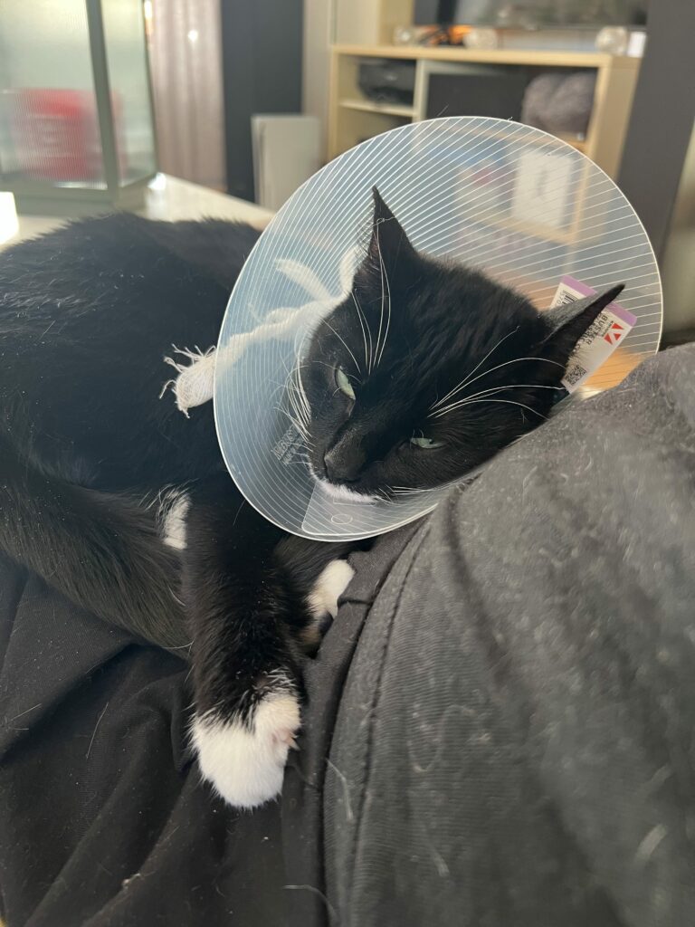 Jag vaknade med intentionen att åka och köpa nya kragar, båda tjejerna tyckte det var pest med de här, och jag hade googlat fram att det finns några uppblåsbara som sitter lite som en badring, tänkte att de får det bli. Men sen såg jag hur Sally slaggade på bordet, och hur Sakina låg på mig och tänkte att fan så obekvämt med en badring runt halsen. De här må vara bökiga, men de kan sova bra ändå. Eftersom båda accepterat dem vid det här laget så struntar jag i det.