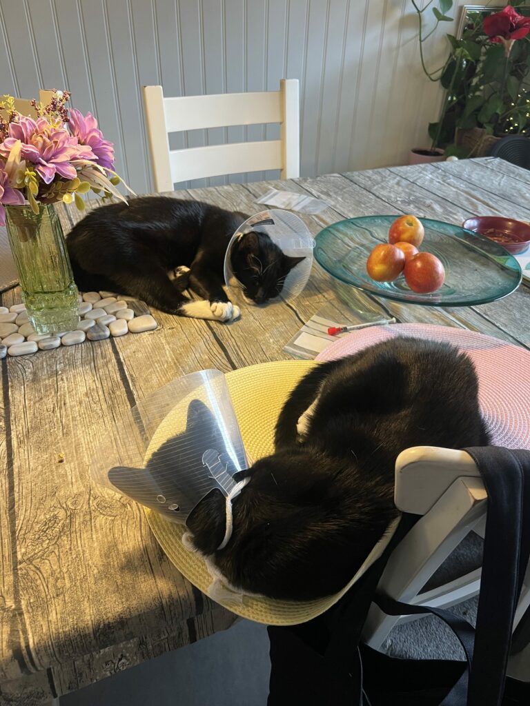 Allt hade gått bra, båda var lite groggy, Sakina hade varit först ut och alltså vaknat först också och — varit rätt förbannad på allt och alla😅 Medan Sally varit nyfiken och gosig. Det känns ju rätt taskigt att bekräfta att den ena är guld och den andra gråsten, men vafan, jag tycker om dem båda ändå 🙂