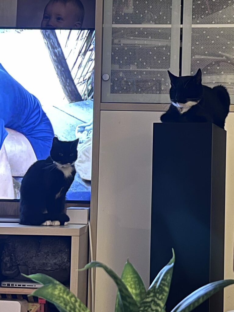 De sitter ändå i vägen för TV:n och ligger och sover på högtalarna:)