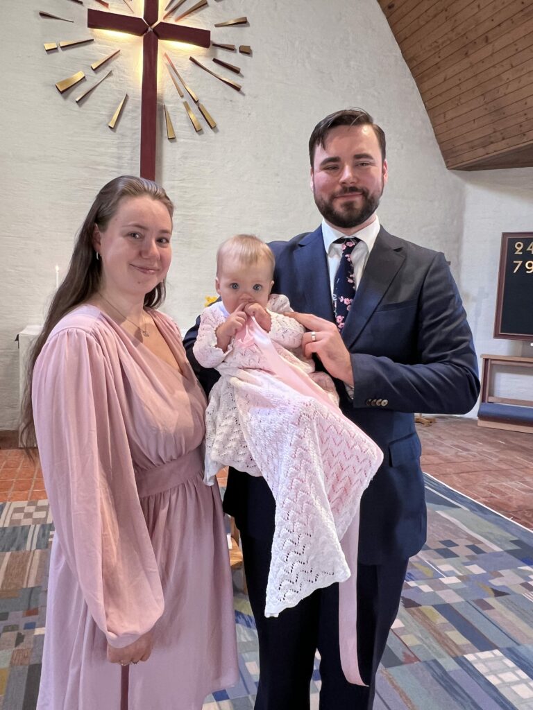 Patricia och Simons kusin Tindra är faddrar och gick med in i kyrkan och satte sig sen ner, Jack var såklart med hela tiden.