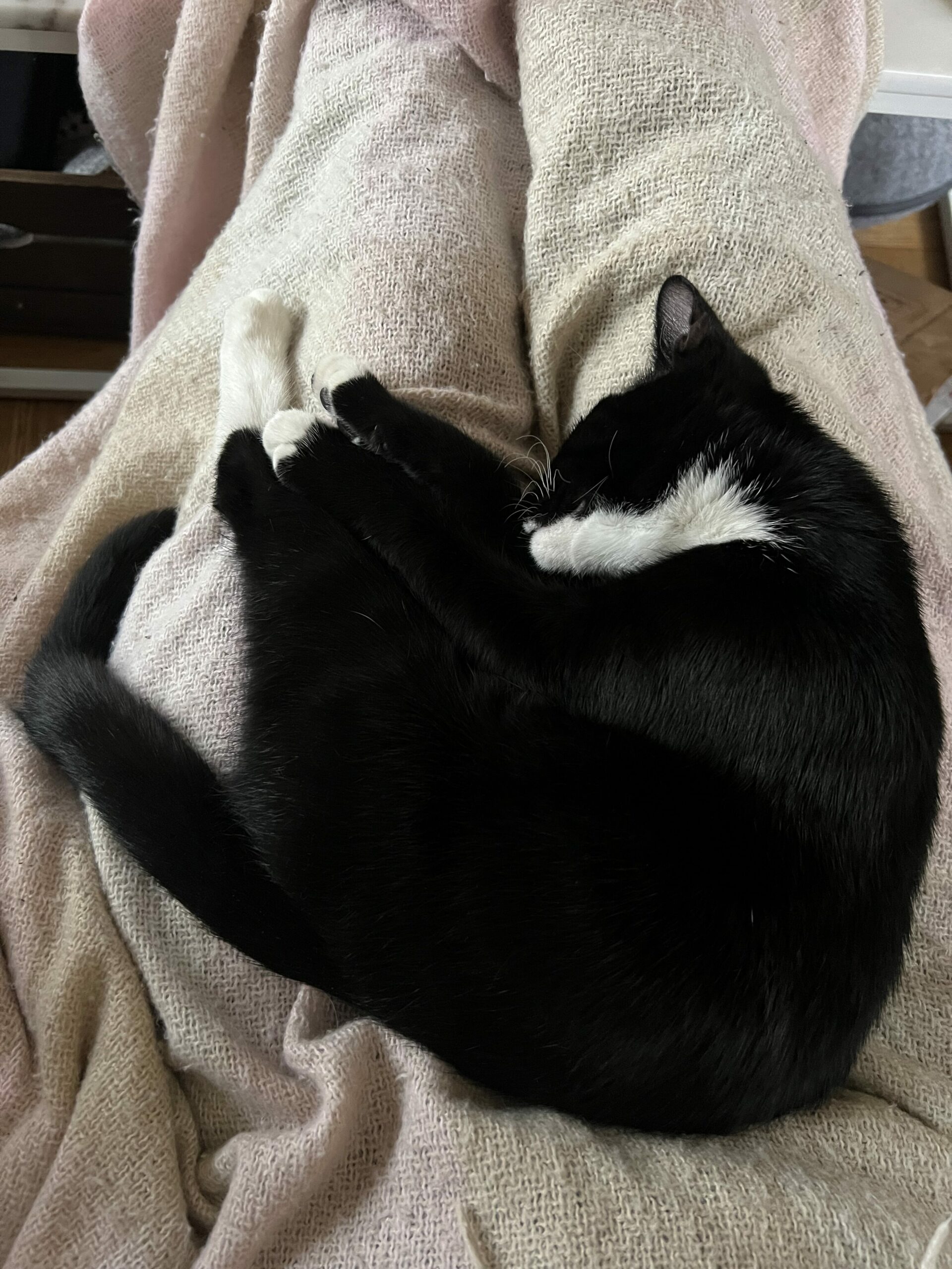 Nu kom Sally och la sig i famnen igen:) Den här gången mellan min mage och datorn som jag fått flytta ut i knät. Så det är ju bara att anpassa sig. Hon behöver sova, och ärligt, det är ett av de mest harmoniska ljud som finns att höra en katt spinna♥