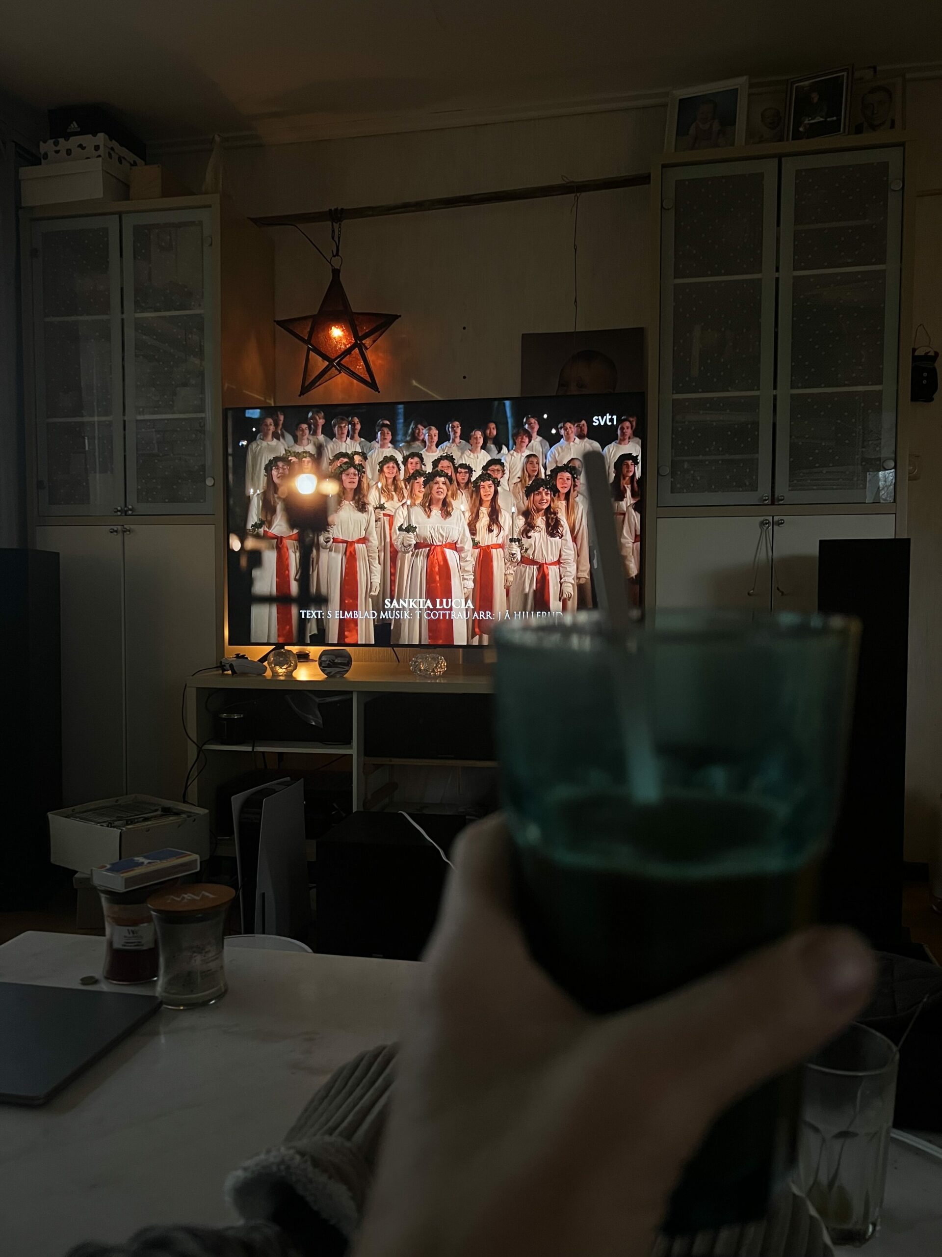 Seg start på lördagen, men mest för att jag blev väckt under natten, och för att Jamie skulle upp tidigt så jag hade larmet ställt. Jag kom på att det ju var Lucia. Jag saknar när barnen var små, alla de här små hållpunkterna man hade, som berättade var på året man var:) Julkänslan infinner ju sig på ett annat vis också när man har kids som ska gå Lucia. Men nu fick jag nöja mig med den på TV, och satt där med min kaffekopp och lyssnade.