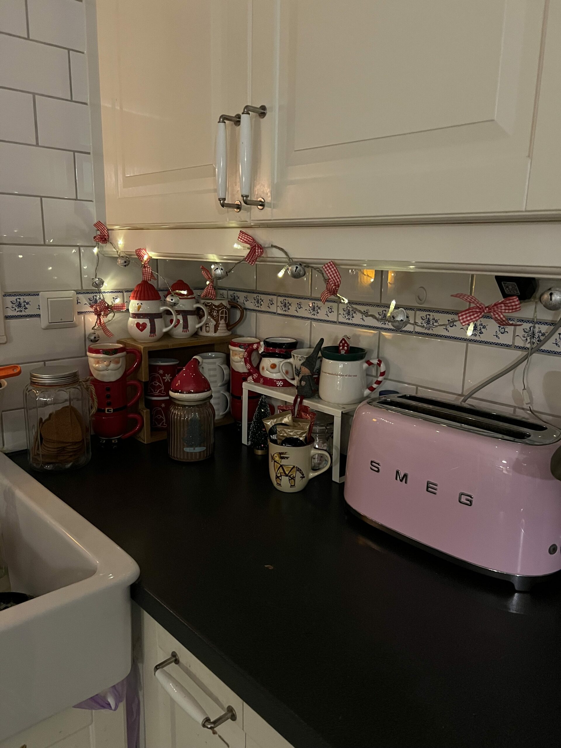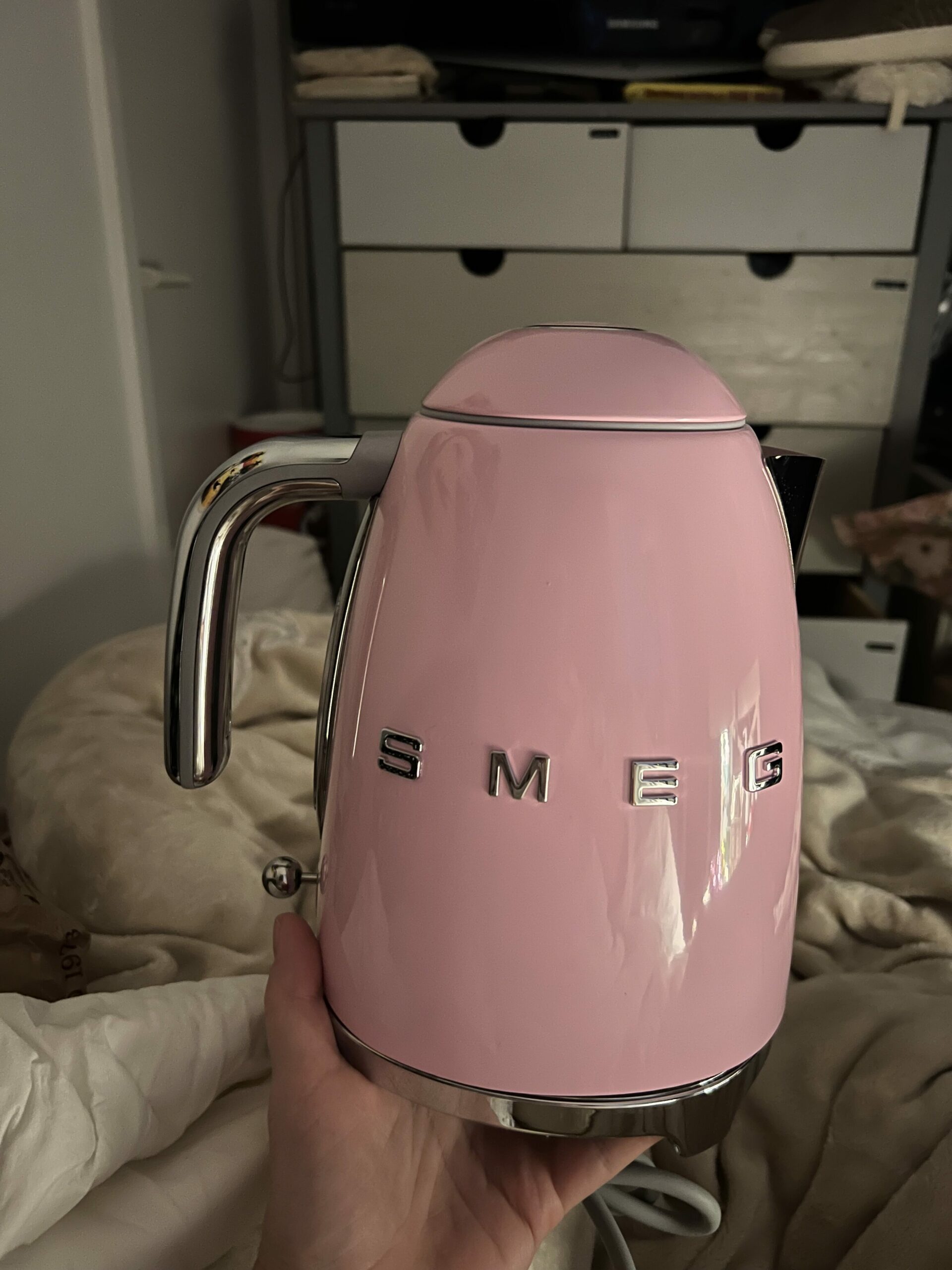 Han hade tydligen noterat att min gamla vattenkokare började ge upp, och sånt där är han bra på att lägga på minnet:) Smeg är dyrt som fan själv också, men vem är jag att klaga? Jag älskar den ♥ Brödrosten gör perfekt rostat och den här vattenkokaren var snabb som vinden. Jag vet inte hur ni gör, men vi använder vattenkokaren hela tiden. Till uppenbara saker som te, men också när vi kokar pasta. Då fyller jag kastrullen till hälften, och tar hälften i vattenkokaren, det går dubbelt så snabbt att koka upp mycket vatten då. Jag har ju stora mängder hela tiden, av förklarliga skäl:)