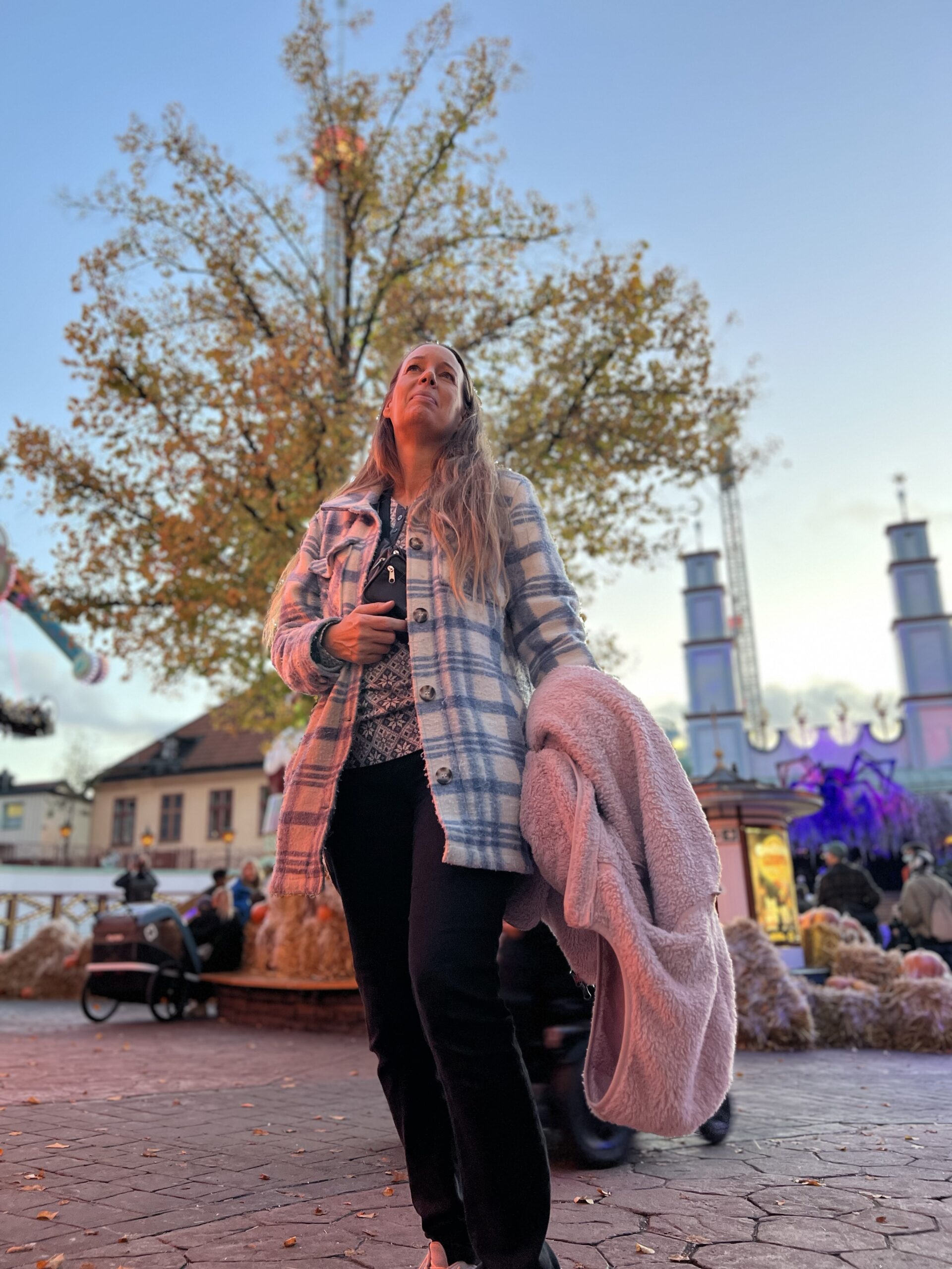 Jag hade den här dagen klätt på mig för att inte frysa. Av erfarenhet vet jag att Grönan är kallt och fuktigt och det blåser gärna nere vid vattnet. Jag hatar att frysa och tog med andra ord på mig min älskade underställströja i ull. Den är alltid perfekt, och var det nu med. Det jag inte behövt var både en fleecejacka och min rutiga jacka… Kvällen höll sig varm och varenda karusell vi åkte så skalade jag av jackorna och slängde dem bredvid för att slippa knöla in dem under säkerhetsbågarna, man vill ju gärna sitta så fast som möjligt:) Jag bar fleecejackan under armen precis hela kvällen, helt onödigt, men sånt där är ju svårt att veta i förväg. Mitt tips är ändå att klä på dig ordentligt. För fryser man är inget kul!