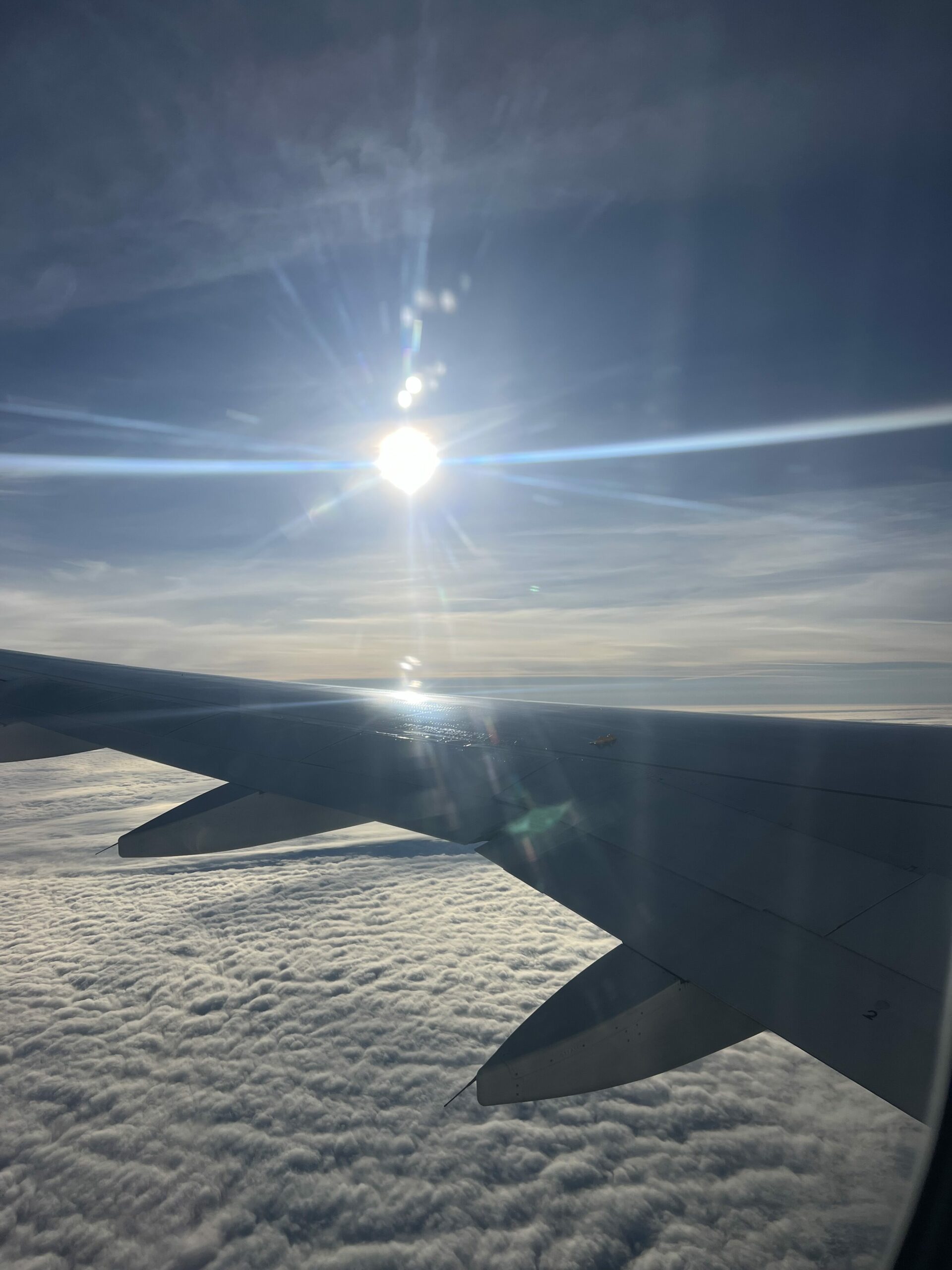 Resan gick utmärkt, jag drack en kopp kaffe och sen tvärsomnade jag. Aldrig någonsin blir jag så trött och sover så gott som på flyg eller tåg. Vaknade av att kapten sa att vi skulle fälla upp stolarna och förbereda för landning.