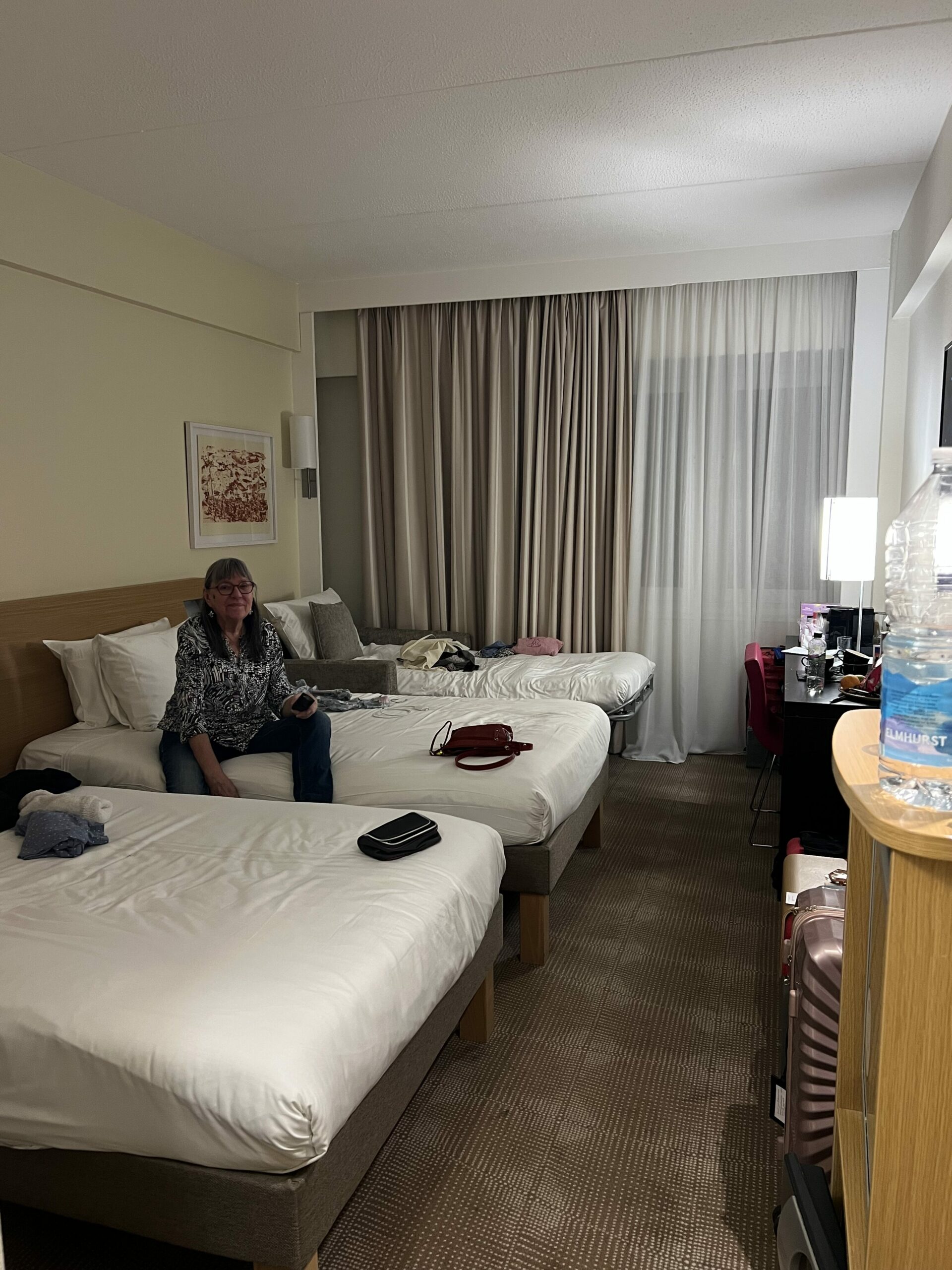 Eftersom mamma snarkar, vilket hon hävdar att hon inte alls gör, så hade jag med öronproppar, och det kan vara mitt bästa hack ever. Jag har ju varit sjuk, en sådär envis tråkig förkylning med kvardröjande hosta som inte blev bättre av torr hotelluft, men med proppar i sov jag som en gris och vaknade inte ens själv av att jag hostade:) Mamma hostar också, vilket jag inte heller hörde. Jag tryckte alltså i propparna, sa godnatt och tvärslocknade. Sov utan att vakna och var relativt pigg på morgonen. Alla vi är morgontrötta så klockan stod på 9.15:) Fördelen med att inte ha frukost i matsalen helt klart.