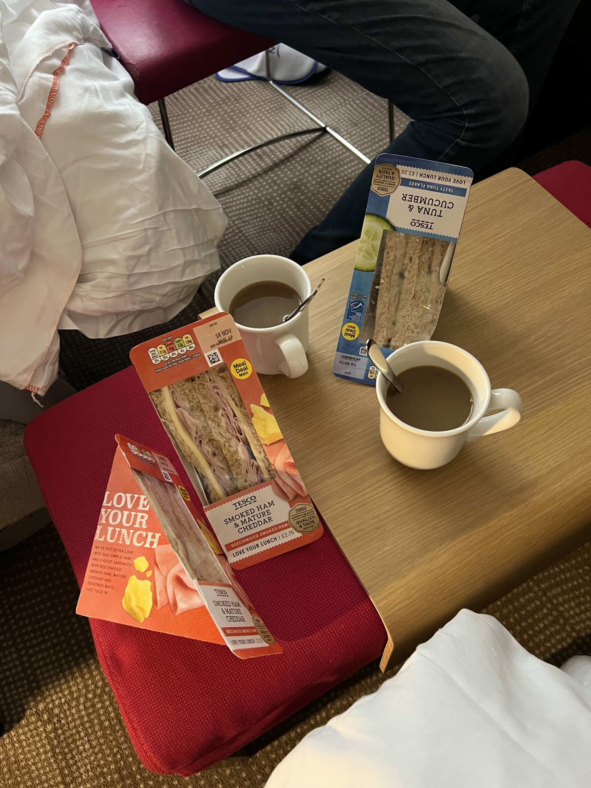 I stället gjorde vi oss klara, duschade, sminkade, kammade hår och gjorde kaffe, innan vi dukade upp våra trekantsmackor, som är något av det bästa jag vet:)